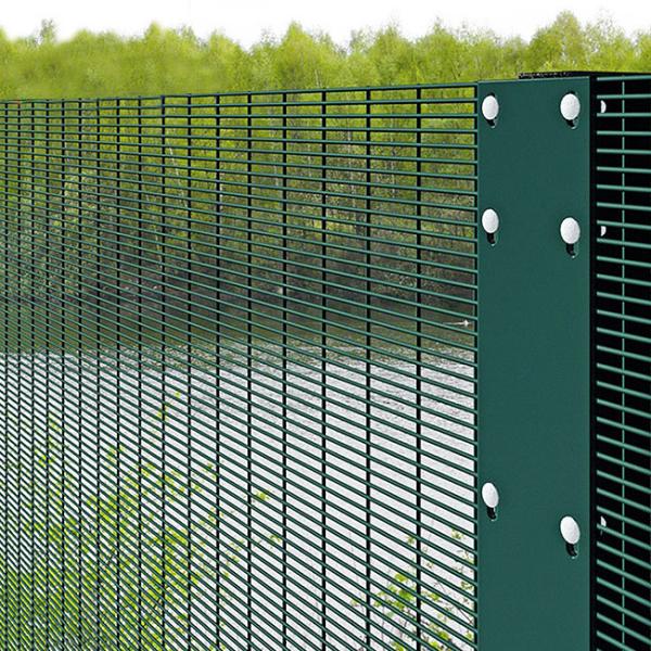 High security fencing , Prison Mesh Fencing or 358 Mesh Fencing as it is also known, is a highly robust steel Mesh Fencing system. It consists of horizontal and vertical mesh wires which are positioned close together to prevent people from fitting their fingers through the apertures, to ultimately climb the fencing
